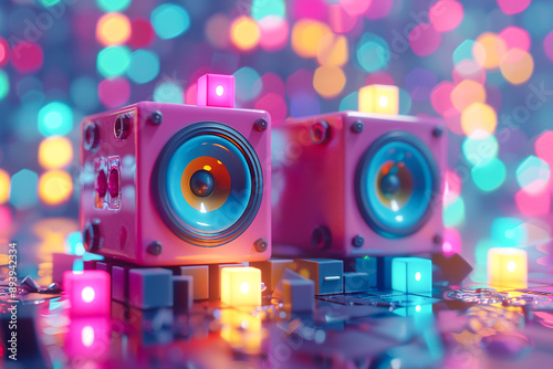© Jsanz_photo, Obraz premium Two Colorful Speakers on Table