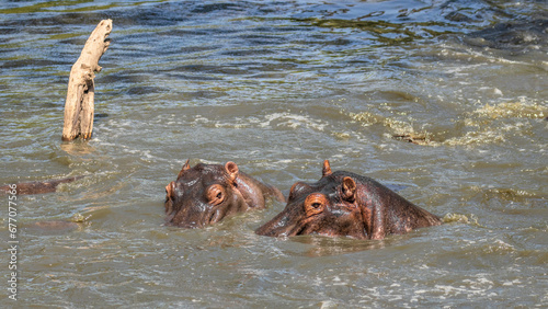 Fototapeta premium Two common hippopotamus (Hippopotamus amphibius), Mara Naboisho Conservancy, Kenya.