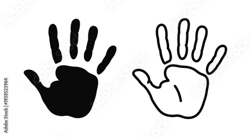 Fototapeta premium Two contrasting handprints one solid and one outlined silhouette