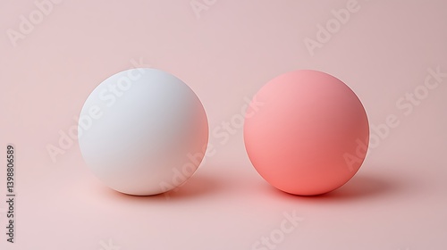 © Yahya, Fototapeta premium Two contrasting spheres of pale pink and white on a pastel pink background.