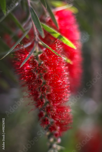 © James, Obraz premium Two Crimson Bottlebrush Blooms. A double image