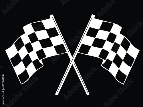 Fototapeta premium Two crossed checkered flags, black and white, indicating the end of a race or...