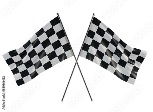 Fototapeta premium Two crossed checkered flags isolated on transparent background