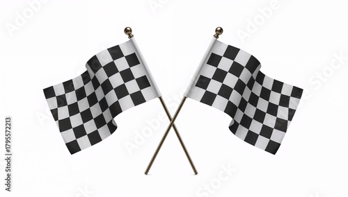 © PrismPNG, Obraz premium Two Crossed Checkered Flags Signifying the Start or Finish of a Competitive Race Event