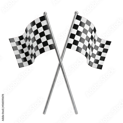Fototapeta premium Two Crossed Checkered Racing Flags Against Transparent Background