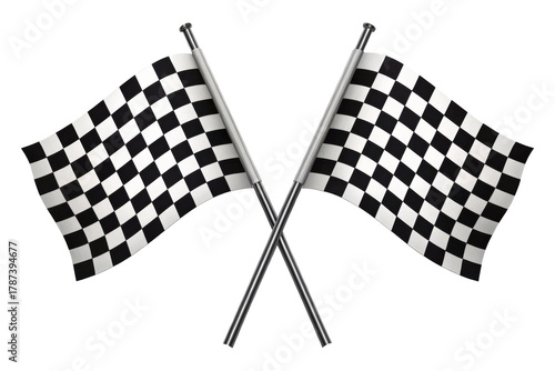 © Pixel Perfect PNG, Fototapeta premium Two Crossed Checkered Racing Flags With White Background