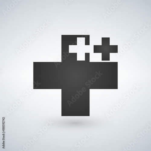 © CarryLove, Fototapeta premium Two Crosses Medicine or christian Logo Concept, cut out shape, vector illustration isolated on white background