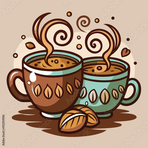 © nadunprabodana, Obraz premium two cups with coffee and cookies