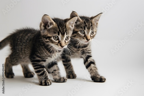 © Ben Kuang, Obraz premium Two curious tabby kittens exploring their surroundings.