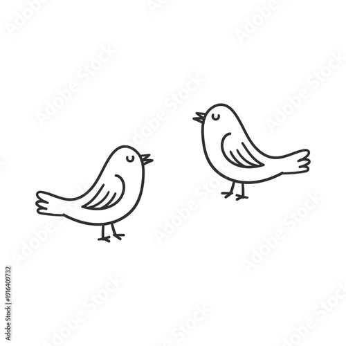 Obraz premium Two cute cartoon birds standing on ground in black outline