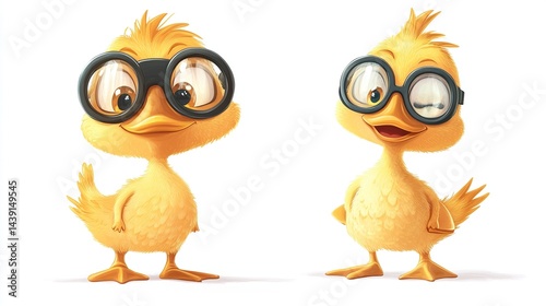© Maman, Fototapeta premium Two cute cartoon ducklings wearing glasses.