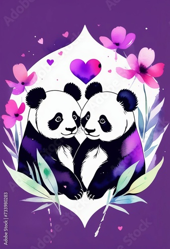 © olenakucher, Fototapeta premium Two cute Cartoon Pandas on a beige background