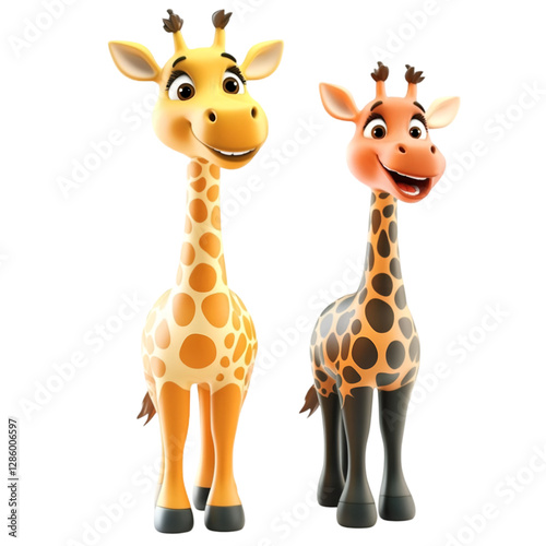 © Mockup Lovers, Fototapeta premium Two cute giraffes with opposite expressions and unique colors on a clean transparent background.