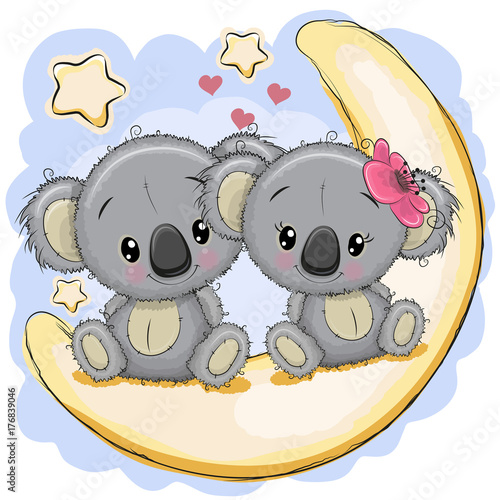 © reginast777, Fototapeta premium Two Cute Koalas is sitting on the moon