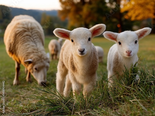 © Hayijnum, Obraz premium Two cute lambs in a field
