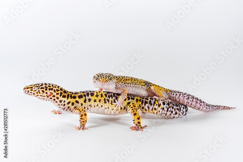 Obraz premium Two cute leopard gecko (Eublepharis Macularius) on a white background.