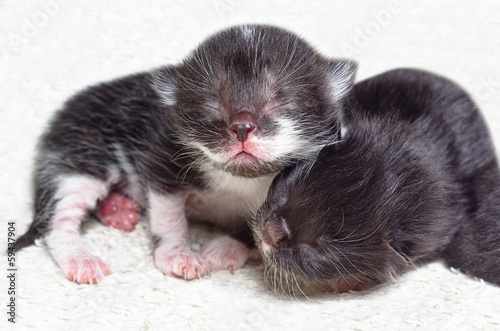 Obraz premium Two cute newborn kitten lying on white background