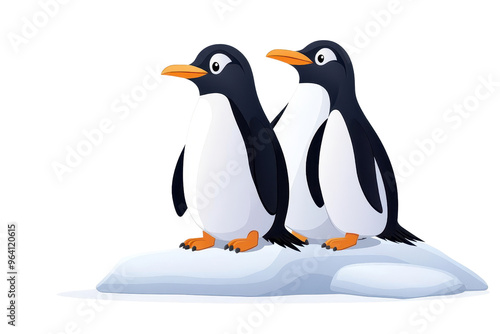 © 1000lnw, Obraz premium Two cute penguins standing on an ice floe, showcasing their charming appearance in a natural habitat.