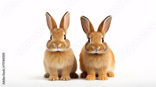Fototapeta premium Two cute rabbits sitting on a white background. Isolated image.