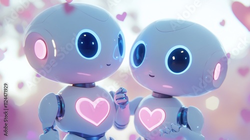 Obraz premium Two cute robots sharing a moment with hearts