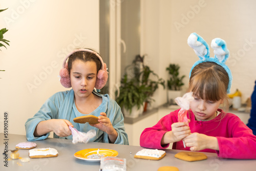 Fototapeta premium two cute sisters make and decorate cookies