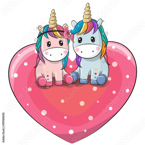 Naklejka premium Two cute Unicorns are sitting on a heart