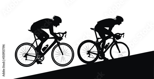 Fototapeta premium Two cyclists silhouette, clean cutout, transparent background