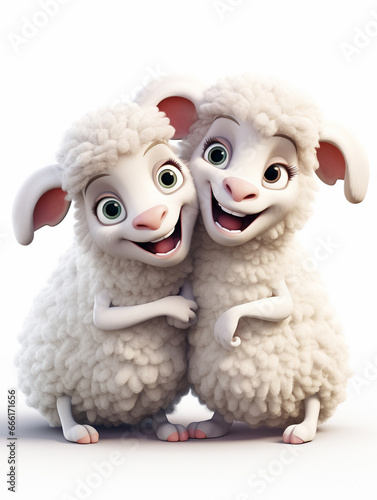 © Nathan Hutchcraft, Obraz premium Two 3D Cartoon Sheep in Love on a Solid Background
