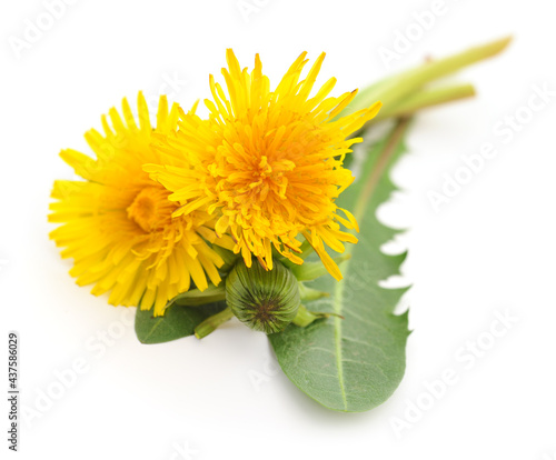 Naklejka premium Two dandelions with leaves.