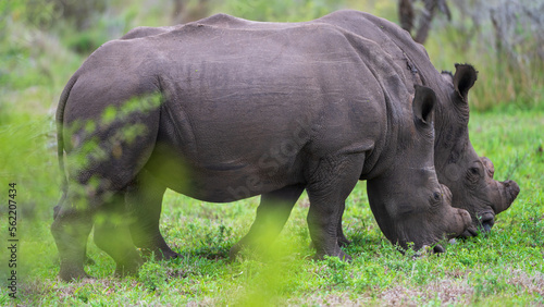Fototapeta premium two dehorned rhino in the grass
