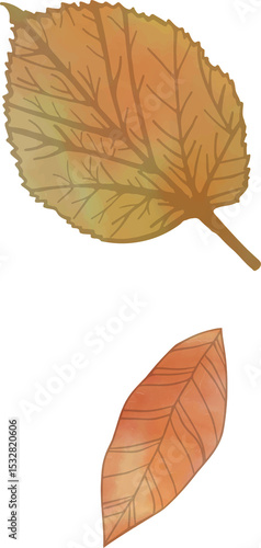 Naklejka premium Two detailed autumn leaves are floating in flat vector design on transparent...