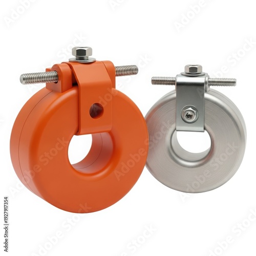 © png stock, Obraz premium Two different types of orange and silver cable clamps with screws for secure connections