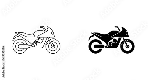 Fototapeta premium Two distinct sport motorcycle vector icons one outlined and one solid black...