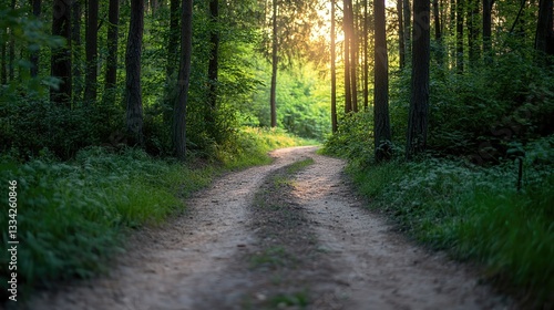 Fototapeta premium Two diverging forest paths: one overgrown, the other well-kept, symbolizing choices between tradition and progress