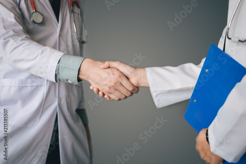 Fototapeta premium Two doctor shaking hands with working together.