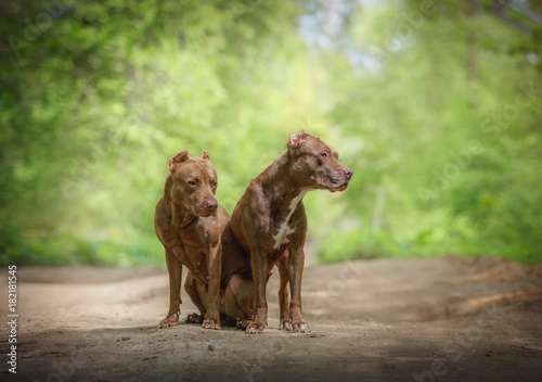 © Владимир Григорьев, Fototapeta premium Two dogs on a walk in a summer forest