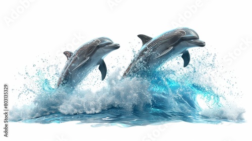 Fototapeta premium Two dolphins are leaping out of the water, creating a splash
