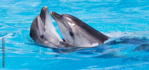 © schankz, Naklejka premium two dolphins dancing in the pool