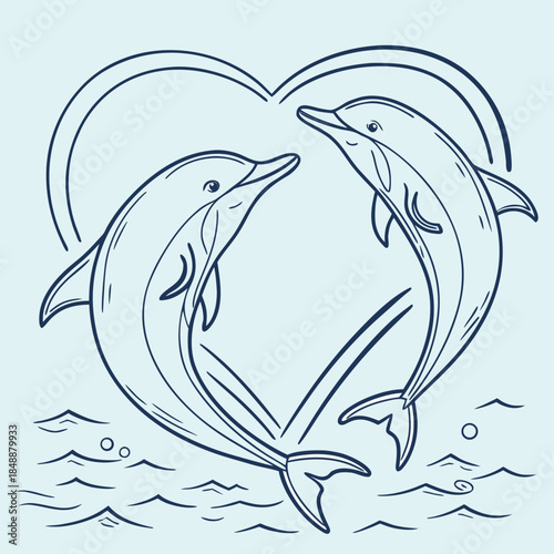Fototapeta premium Two dolphins in heart shape