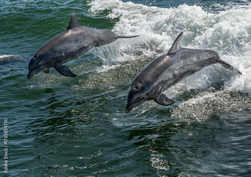© Clyde Sweatt, Obraz premium two dolphins jumping