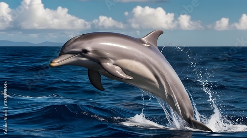 © Muhammad, Fototapeta premium Two dolphins jumping out of the water in the ocean