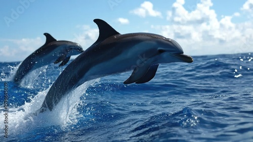 Naklejka premium Two dolphins leaping gracefully in the ocean