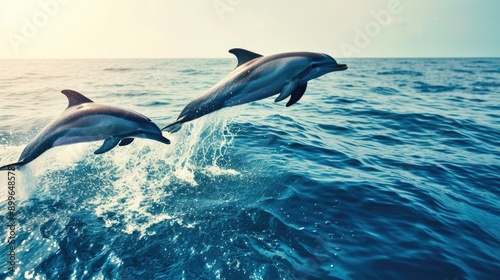 © Andrii , Obraz premium Two Dolphins Surging Through Ocean Waves