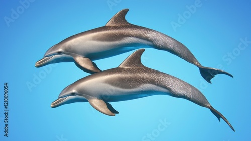 © julio, Obraz premium Two Dolphins Swimming in Blue Ocean