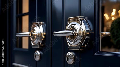 © Linus, Obraz premium Two doors with a silver handle and a silver knob