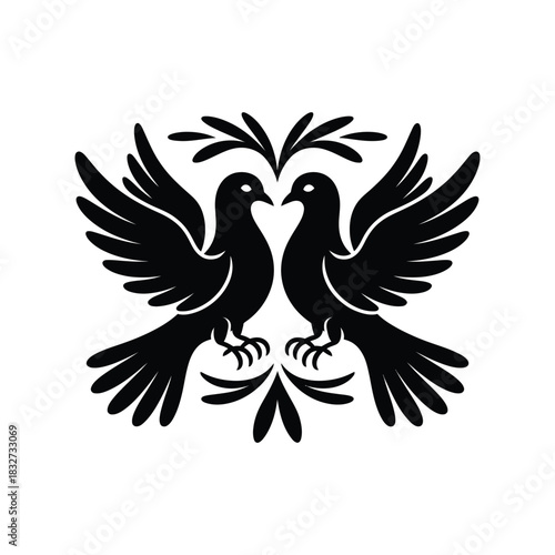 © Mst Insanara Begum, Obraz premium Two doves forming a heart shape, silhouette vector design on a white background