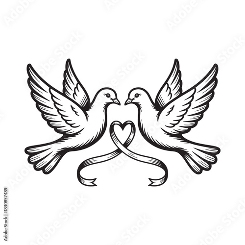 Fototapeta premium Two doves forming a heart with a ribbon
