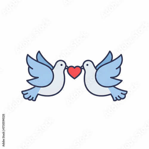 © Neyrostocker, Obraz premium Two doves holding a red heart while facing each other