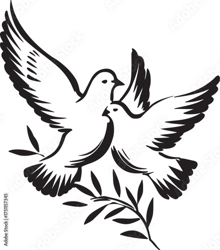 © HASNAT, Obraz premium Two doves with olive branch vector illustration