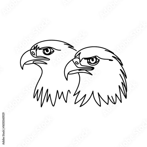 Fototapeta premium Two Eagle Heads: Minimalist Line Art Illustration